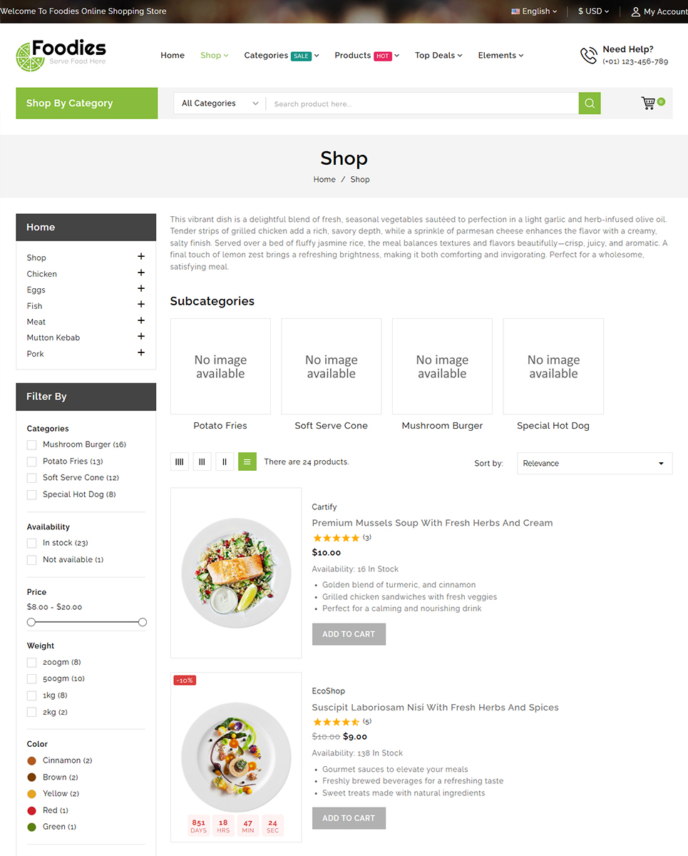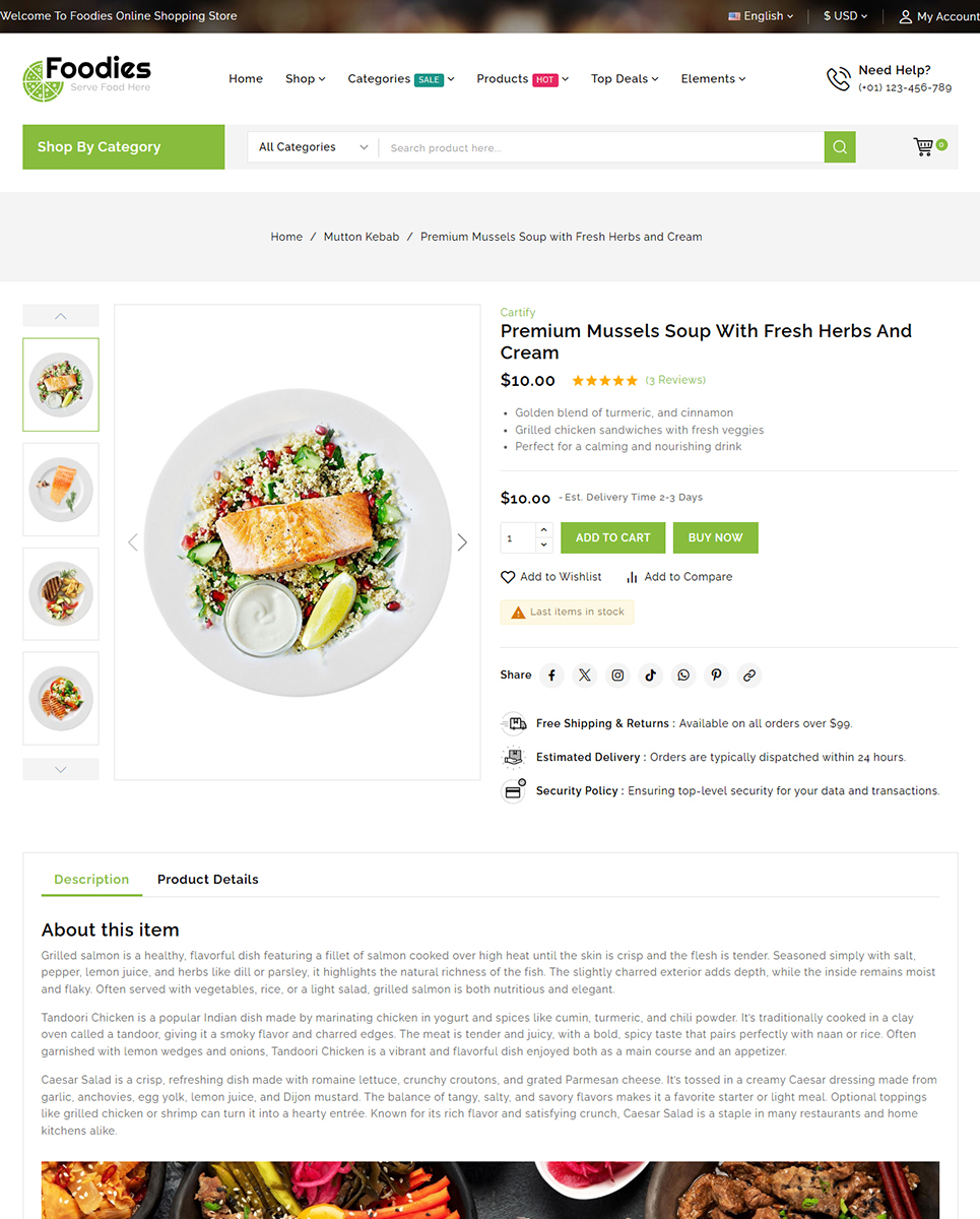 Foodies includes a Quickstart Installation Package, helping you launch your online restaurant store quickly with ready-made demo content. To enhance the customer experience, the theme is enriched with AJAX-powered features such as live search, product filtering, quick view, wishlist, compare, and seamless add-to-cart functionality. A Child Theme is also included to ensure safe customization and easy updates in the future.