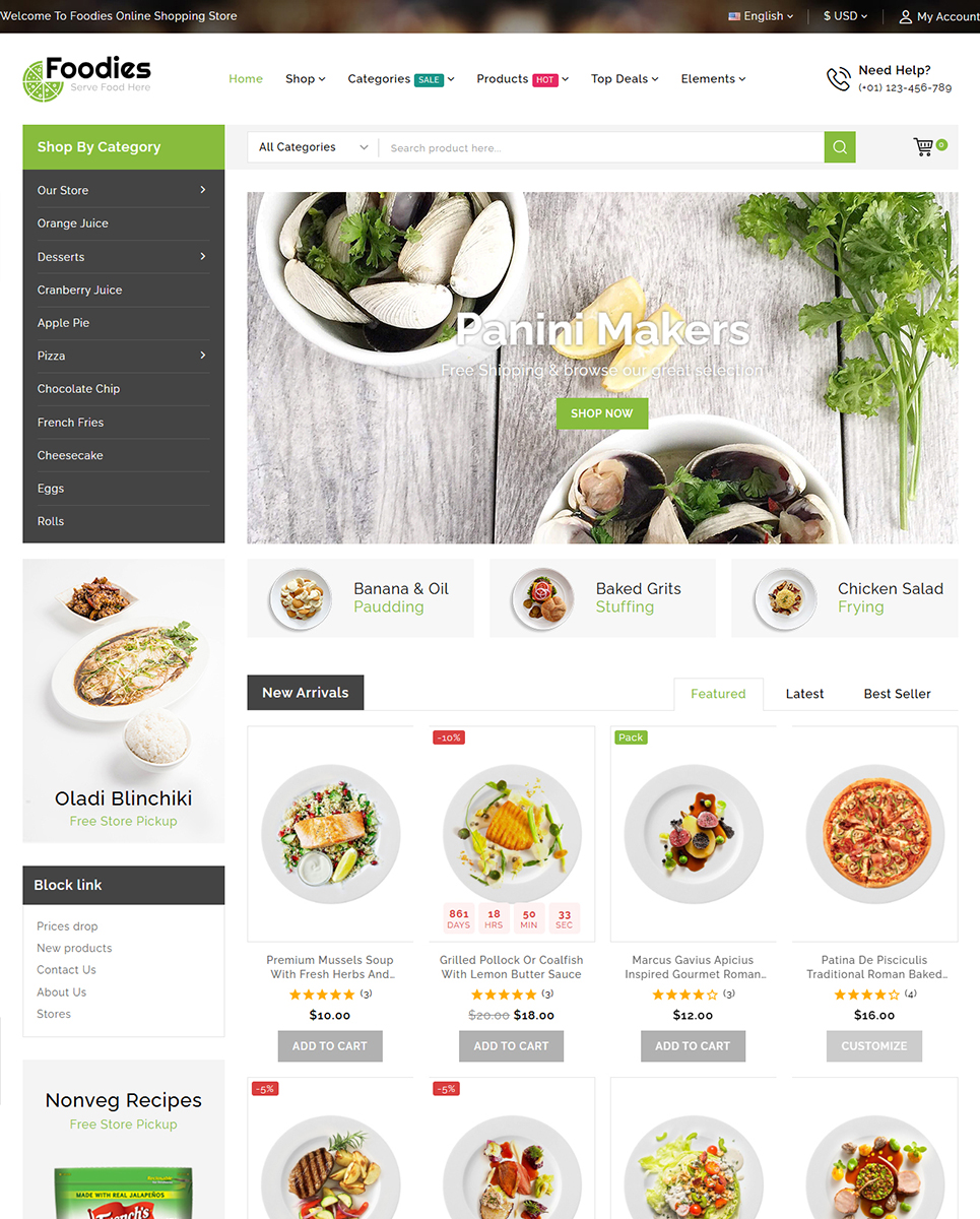 Foodies is a vibrant, modern, and appetizing Best PrestaShop Themes designed for restaurants, cafés, fast food outlets, bakeries, and online food delivery businesses. With its clean layout, mouth-watering visuals, and well-structured sections, Foodies helps you present your menu, special dishes, combos, and offers in a way that instantly captures attention and encourages orders.