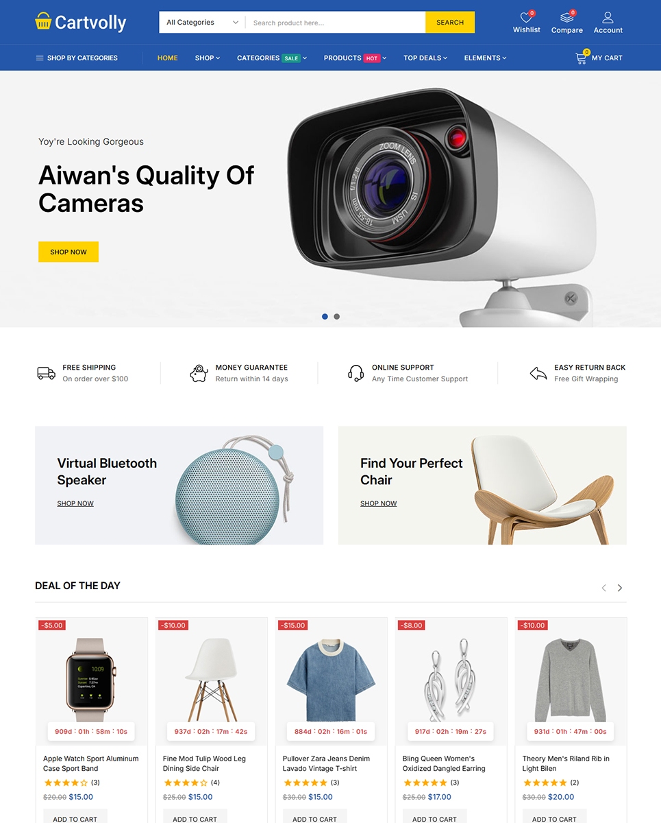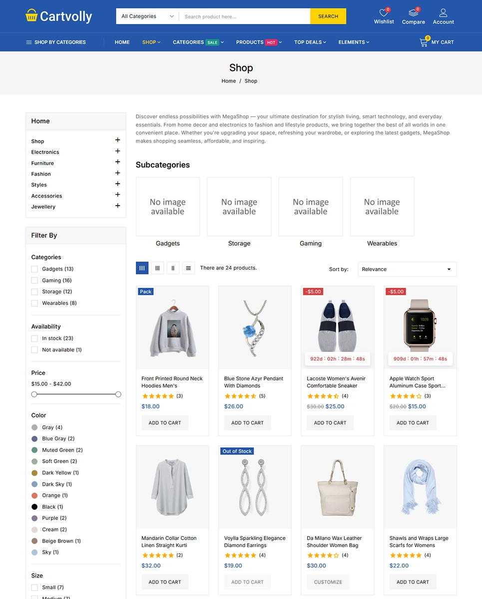 Cartvolly includes a Quickstart Installation Package, making it easy to launch your mega store quickly with demo content. To enhance the shopping experience, the theme is packed with AJAX-powered features such as live search, advanced product filtering, quick view, wishlist, compare, and seamless add-to-cart functionality. A Child Theme is also included to ensure safe customization and hassle-free future updates.