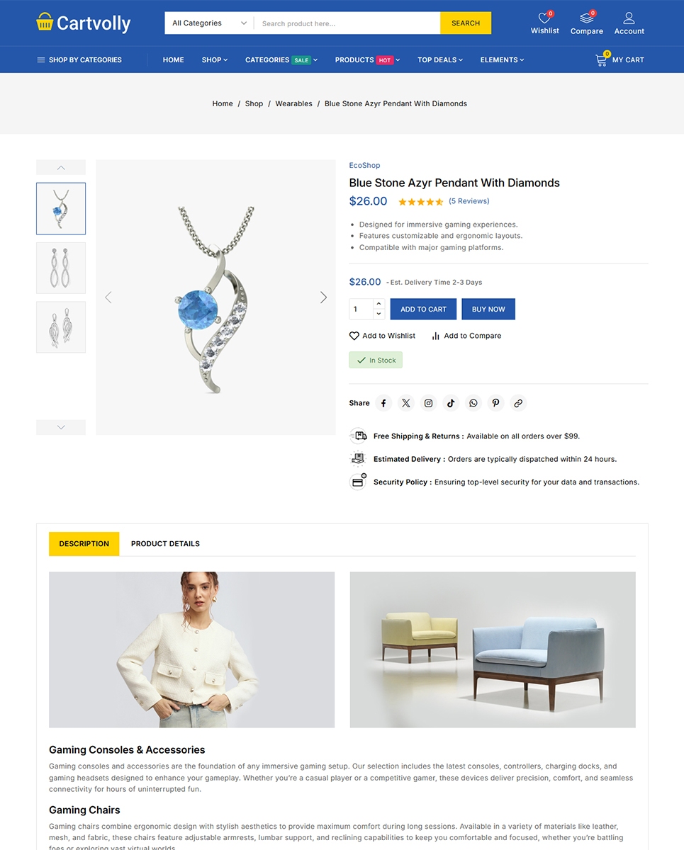 - Product Quickview, Wishlist, and Compare
