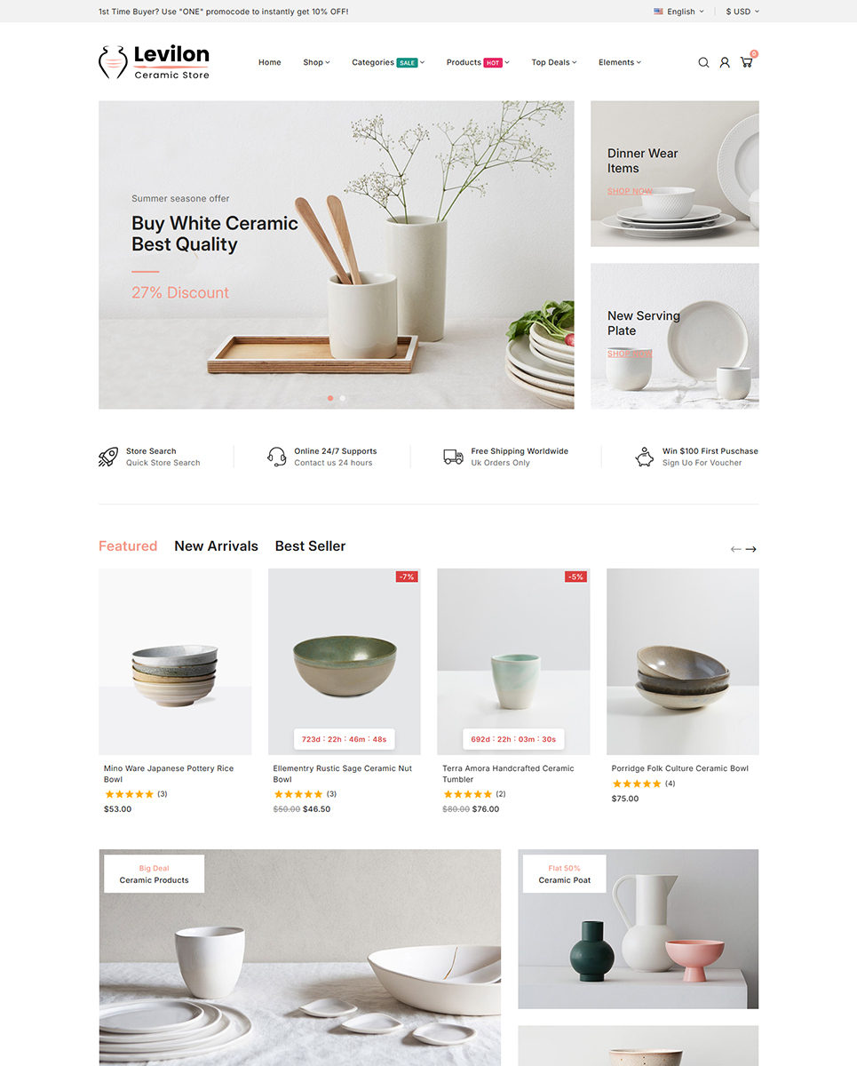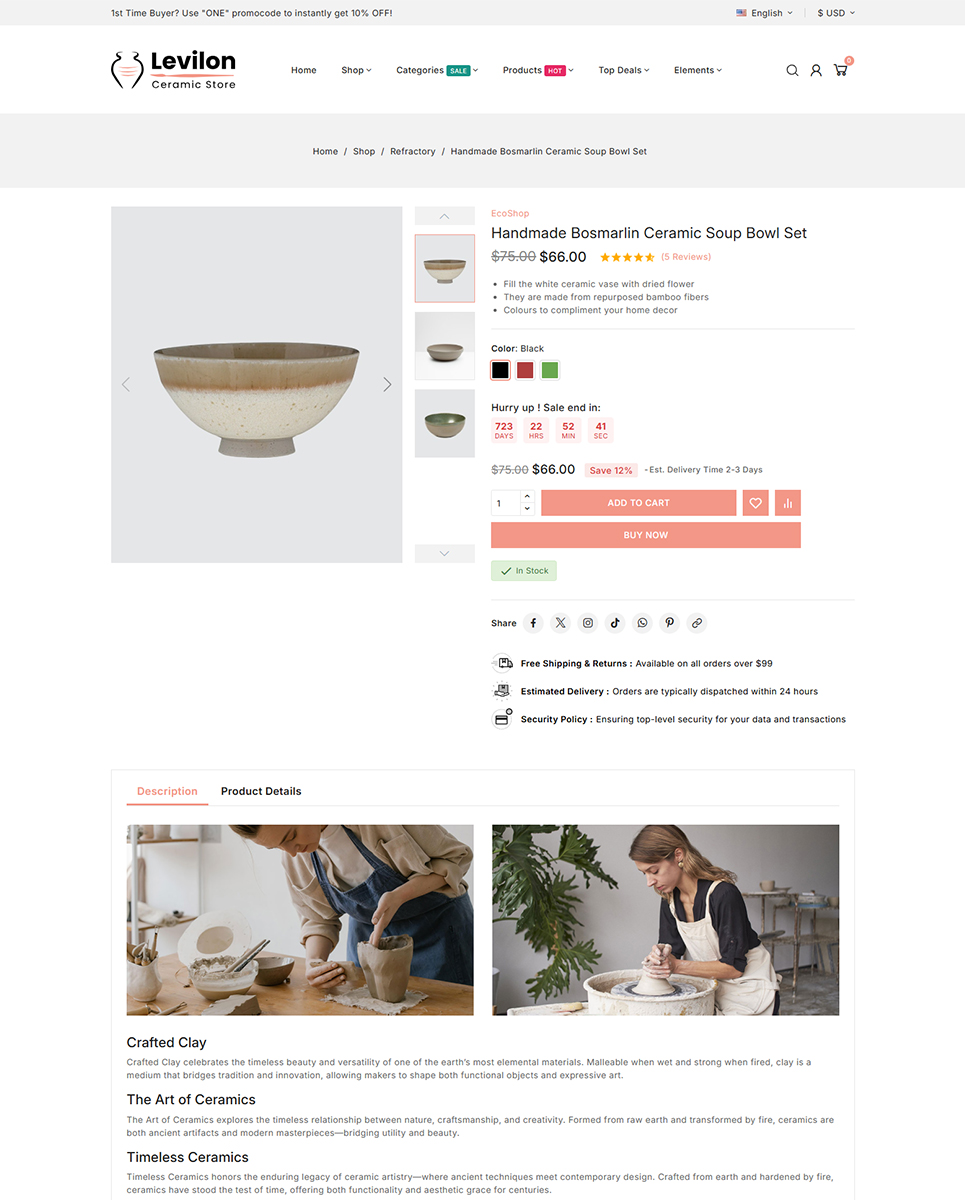 Levilon is a beautifully crafted, artistic, and minimal Best PrestaShop Themes designed for ceramic studios, handmade craft stores, pottery shops, artisan boutiques, and cultural product sellers. With its clean layout, soft color palette, and elegant product presentation, Levilon helps you showcase handmade ceramics, pottery items, decorative crafts, and artistic creations in a visually captivating and authentic online store.