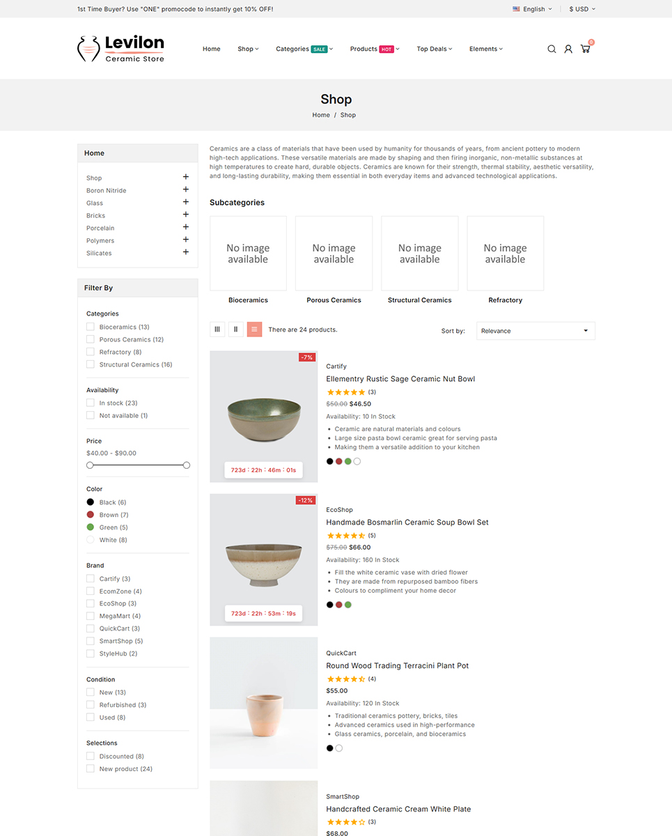 Levilon - Ceramic and Craft PrestaShop Theme