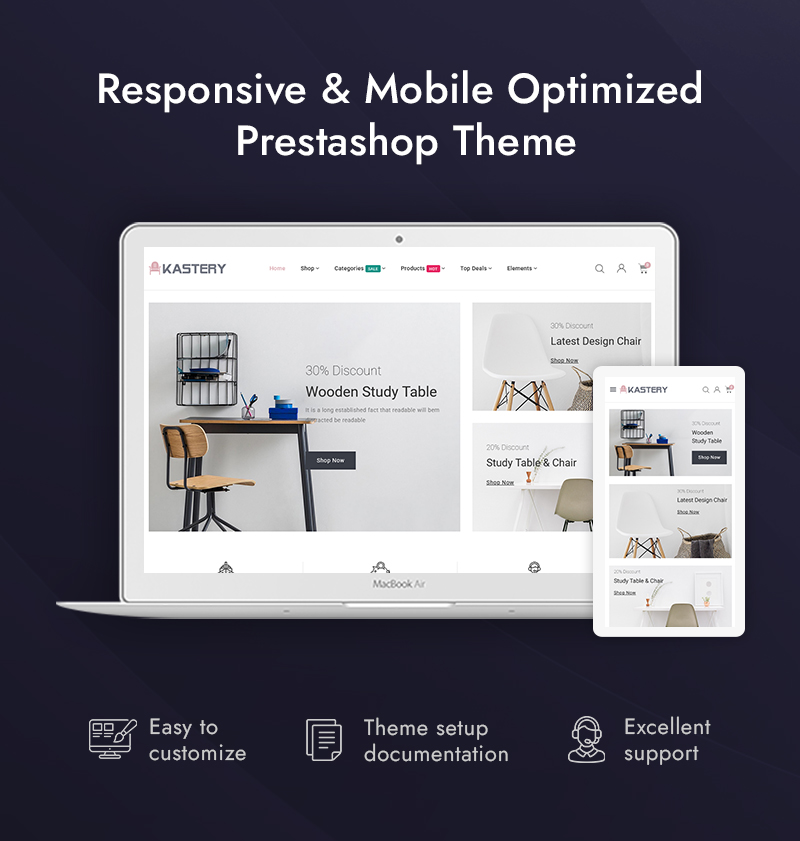 Kastery – Wood Store Best PrestaShop Themes is a robust and elegant eCommerce solution designed for timber shops, wooden furniture stores, carpentry businesses, and handcrafted wood product sellers. With its warm tones and natural-inspired design, Kastery beautifully highlights wood textures, craftsmanship, and premium quality products.
