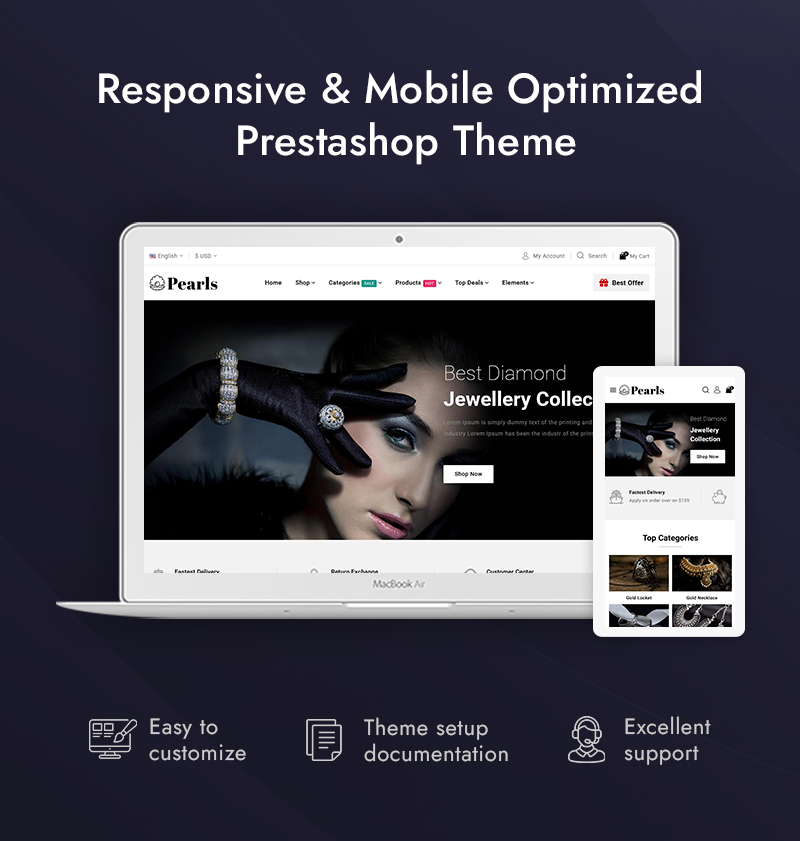 Optimized for SEO, speed, and the latest PrestaShop standards, Pearls offers reliable performance and scalability. Whether you sell fine jewelry, diamond collections, gold ornaments, or designer accessories, Pearls provides the perfect combination of elegance, flexibility, and modern eCommerce functionality to elevate your online store.